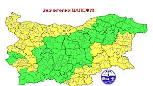 Предупреждение за валежи от дъжд ще има в областите София град, София област, Перник, Благоевград, Кюстендил, Видин, Монтана, Враца, Плевен и отчасти от Велико Търново.