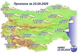 Максималните температури през деня ще бъде от 28 до 32 градуса, а за София около 28.