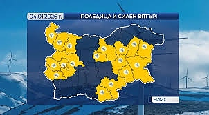 Синоптиците предупреждават за жълт код и силен вятър и поледици в редица области.