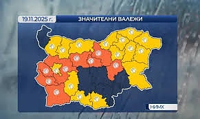 По-малко по количество валежите бяха югоизточната част от страната, утре през деня и в северозападните части, ще има по-малко валежи.