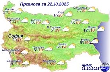 Днес времето ще бъде слънчево, но ще има временни увеличения на облачността, по-значителна ще бъде над южните и планинските райони. На отделни места има вероятност да превали слаб дъжд. В ппанините на места в западната половина от Стара планина и масивите в Югозападна Бъ...